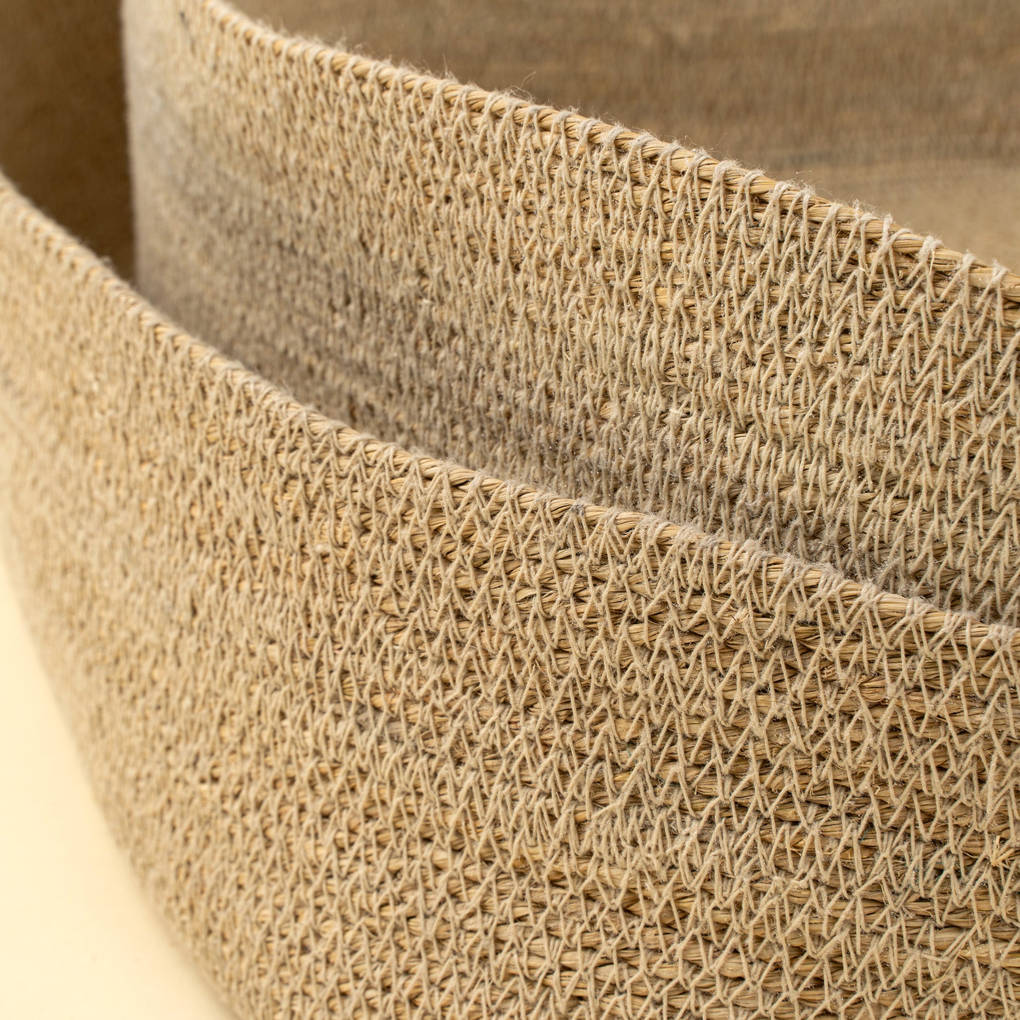 Add natural texture and functional charm to your home with the Natura Seagrass Basket Trays, a handcrafted set of two nesting storage baskets. Made using traditional crafting methods, these baskets feature durable seagrass with distinctive overstitching and a dramatic scale that suits coffee table storage or display alike.