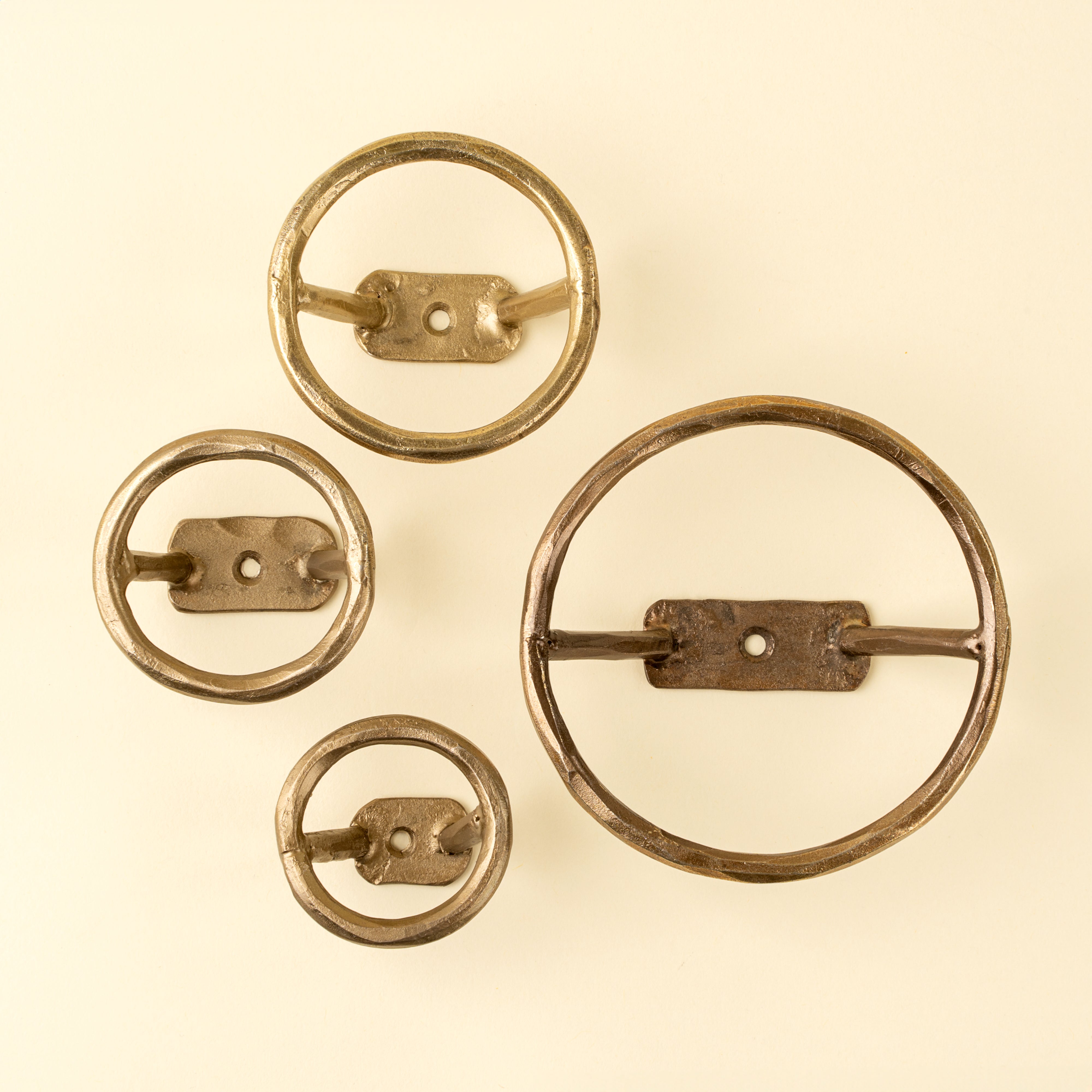 Add a touch of functional elegance to your home or retail space with the Hand Forged Ring Hooks. Handcrafted in Moradabad, India, a city known for its traditional metalwork, these Hand Forged Ring Hooks feature an antique brass finish that elevates even the simplest storage solution. Both practical and pretty, it’s a small detail that makes a big impact.