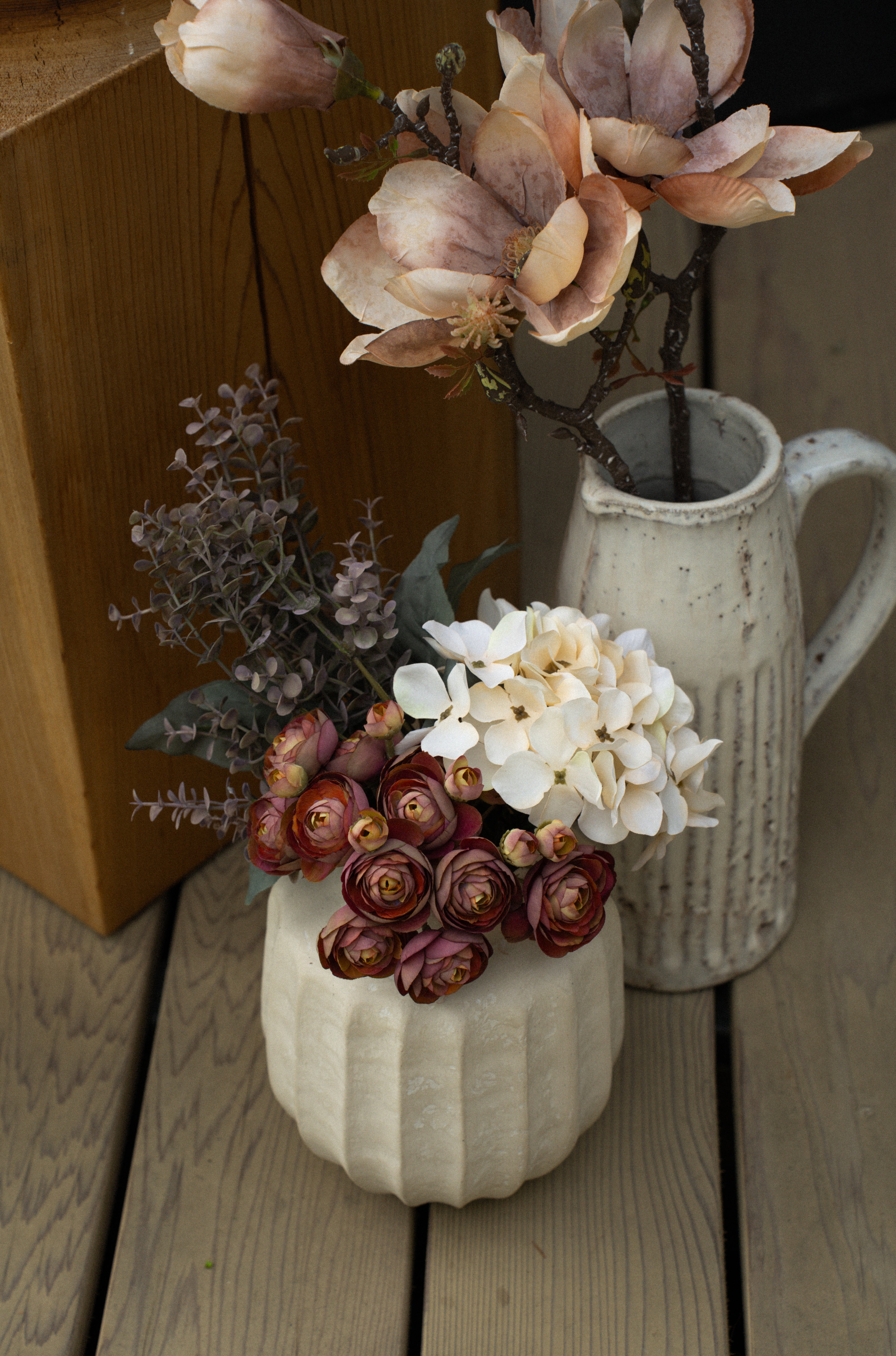 Bring the charm of fresh-cut florals into your home, minus the upkeep. The Ranunculus Bouquet captures the romantic beauty of real blooms with the lasting ease of faux flowers, making it a joy to style year-round.