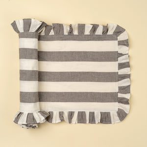 Ruffle Thick Stripe Table Runner - 112"L, Grey