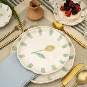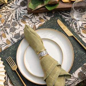 Curate a tablescape to suit your style with our collection of beautiful fabric, stunning ceramics, and handblown glassware.