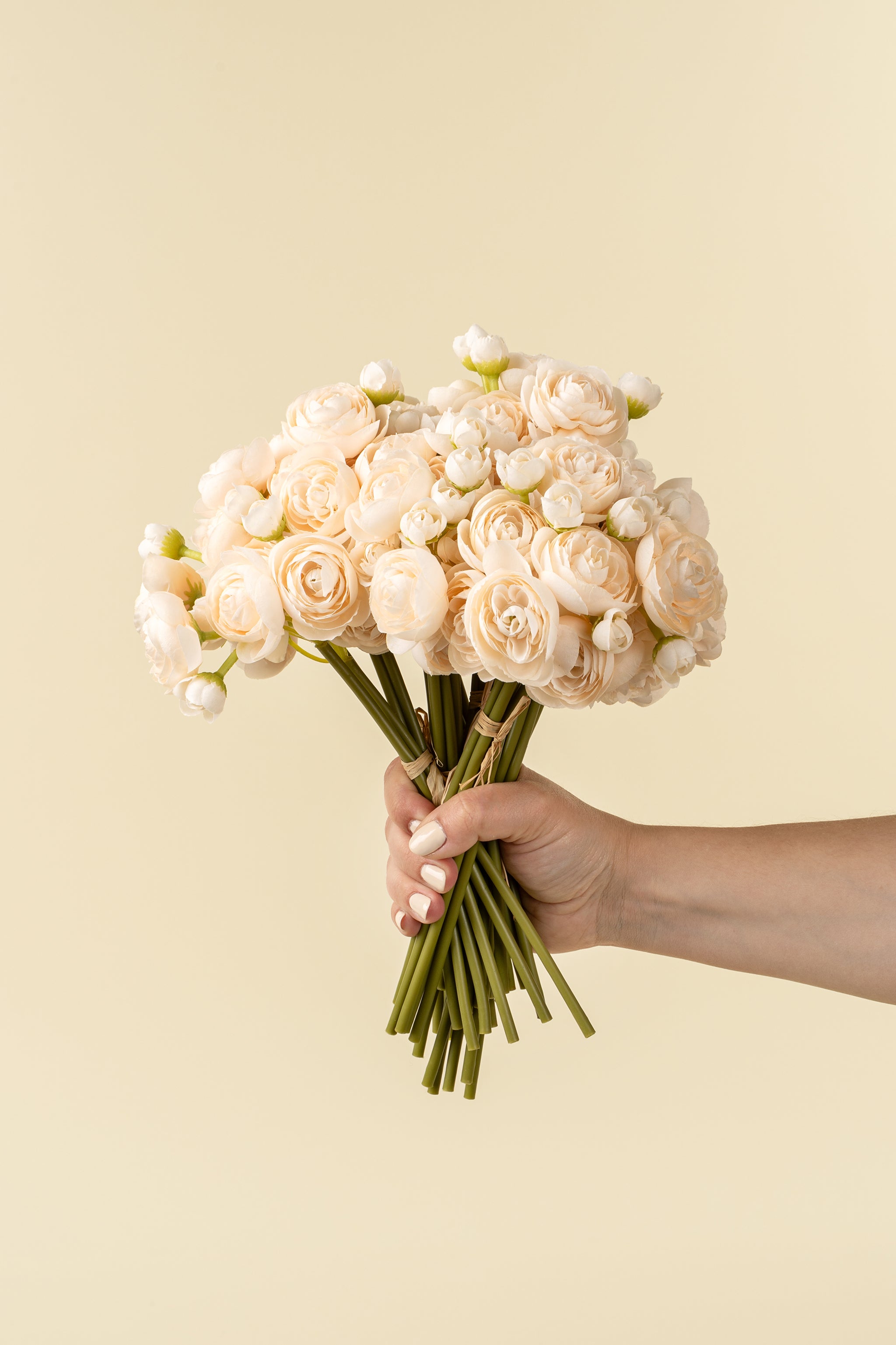 Ranunculus Bouquet, Cream, Faux Flower Stems for Decorative Vases