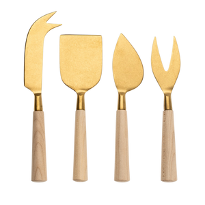 Maple Wood Cheese Knives S/4, Tumbled Black