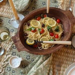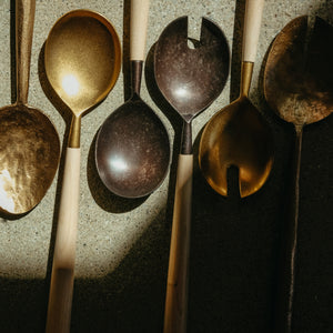 Maple Wood Salad Servers S/2, Tumbled Gold