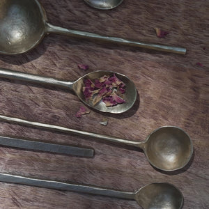 Add some sophistication to your table. Hand-forged in India and crafted for daily use, the refined shapes and distressed matte finishes of our flatware collection elevate the pieces.