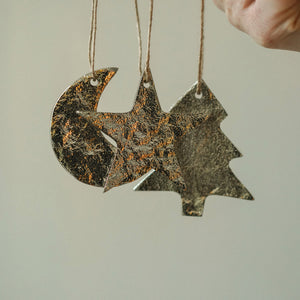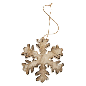 Wooden Fluffy Snowflake Ornament S, Whitewash