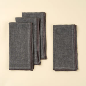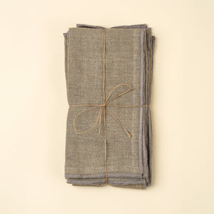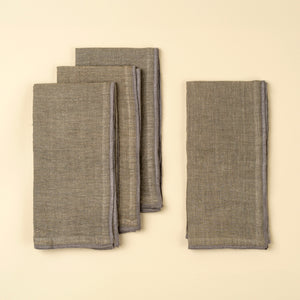 Gold Blanket Stitch Napkins S/4, Linen Grey