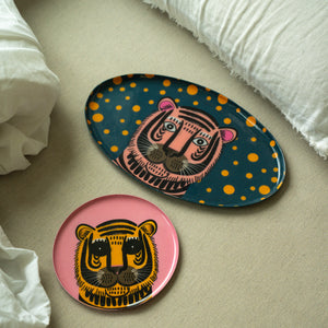 Pink Tiger Decorative Enameled Tray