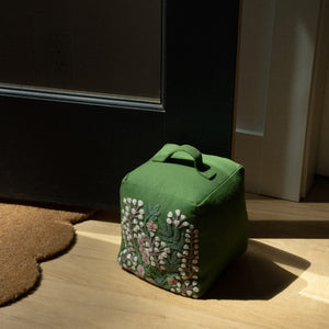 Embroidered Floral Doorstop, Green