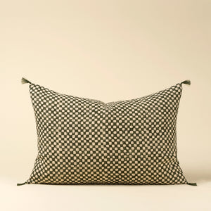 16x24 Block Print Check Linen Pillow, Green