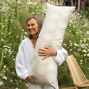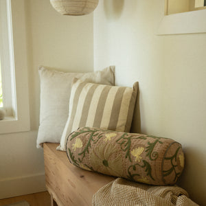 Suzani Embroidered Kantha Bolster, Beige