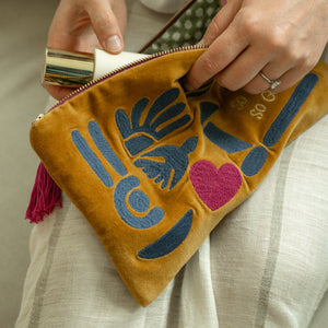 Spring Silhouettes Velvet Embroidered Pouch
