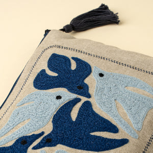 Birdsong Embroidered Pouch, Blues