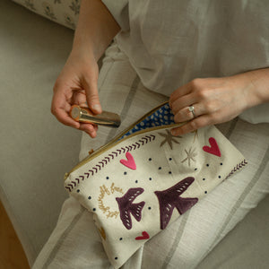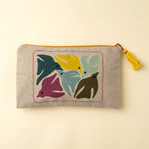 Birdsong Embroidered Pouch, Multi
