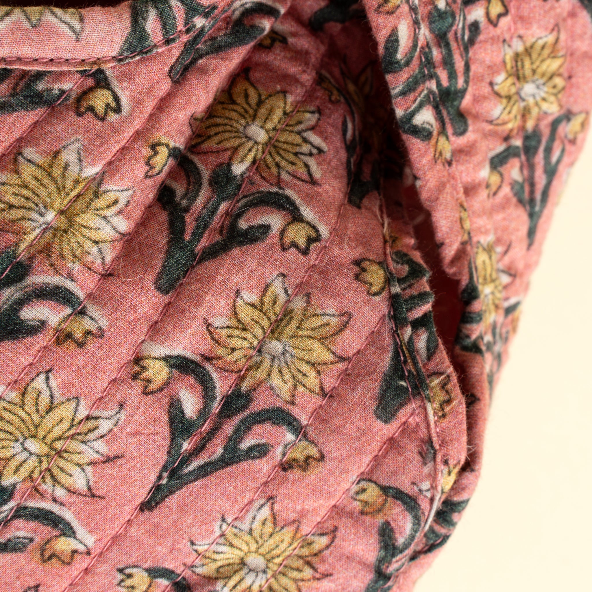 Elevate your everyday essentials with the Block Print Knot Vanity Bag. Handcrafted from soft cotton and filled for a lightly quilted feel, this unique makeup bag features bold block printed florals and a charming loop knot closure. Inspired by traditional crafting methods, it’s a playful yet practical way to store your beauty must-haves.