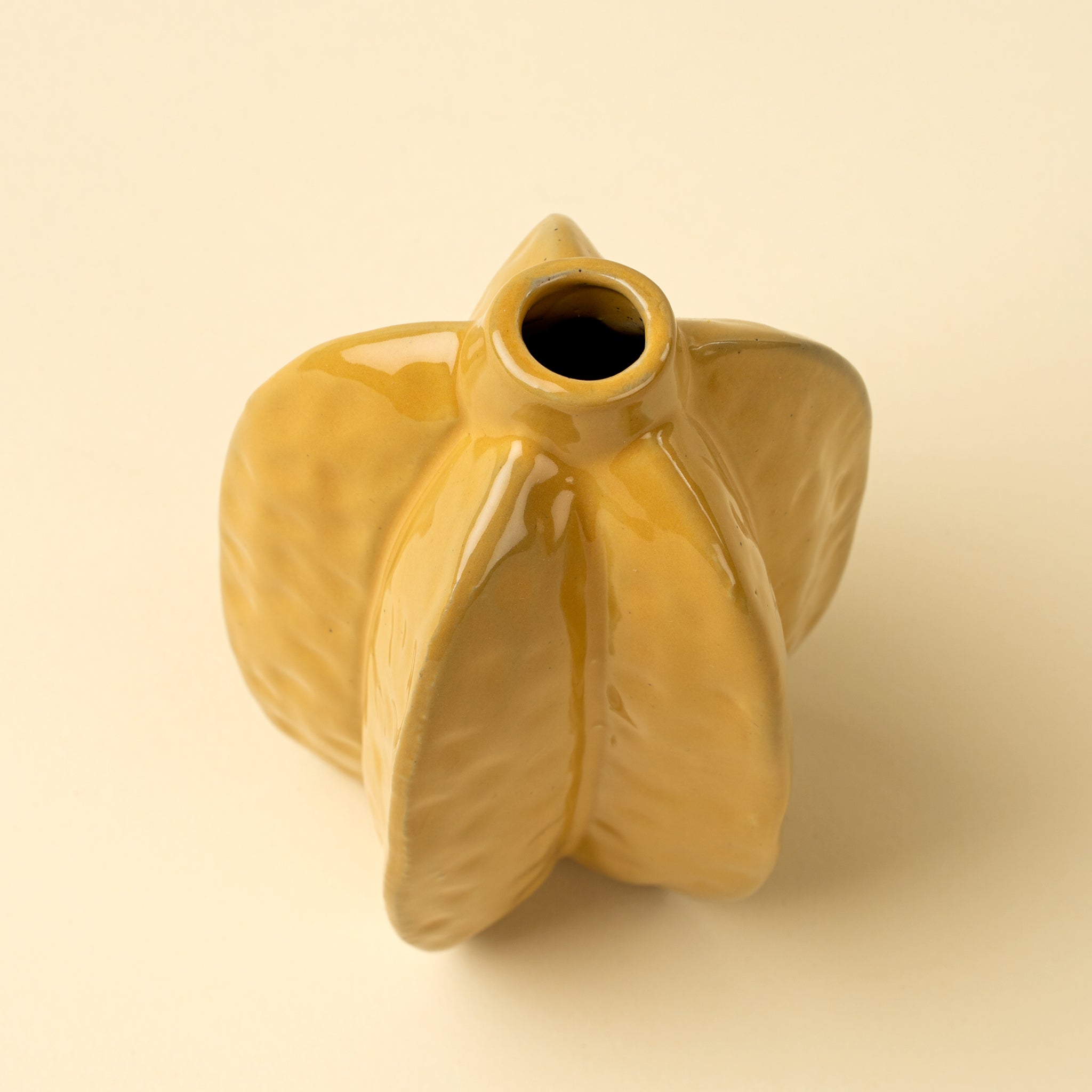 Carambola Vase, Ochre, A Glossy Decorative Vase Inspired by Nature’s Forms