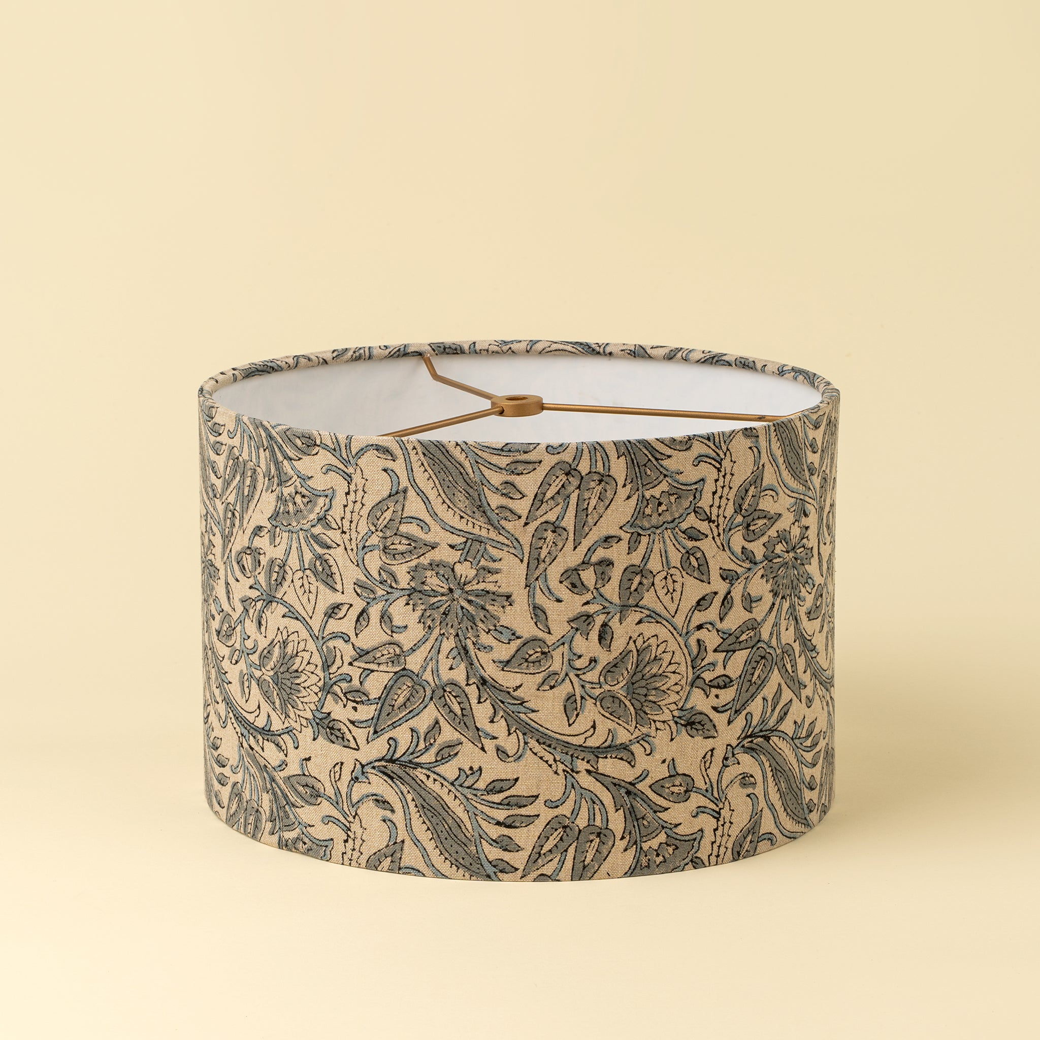 Drum lampshade made with hand block printed fabric