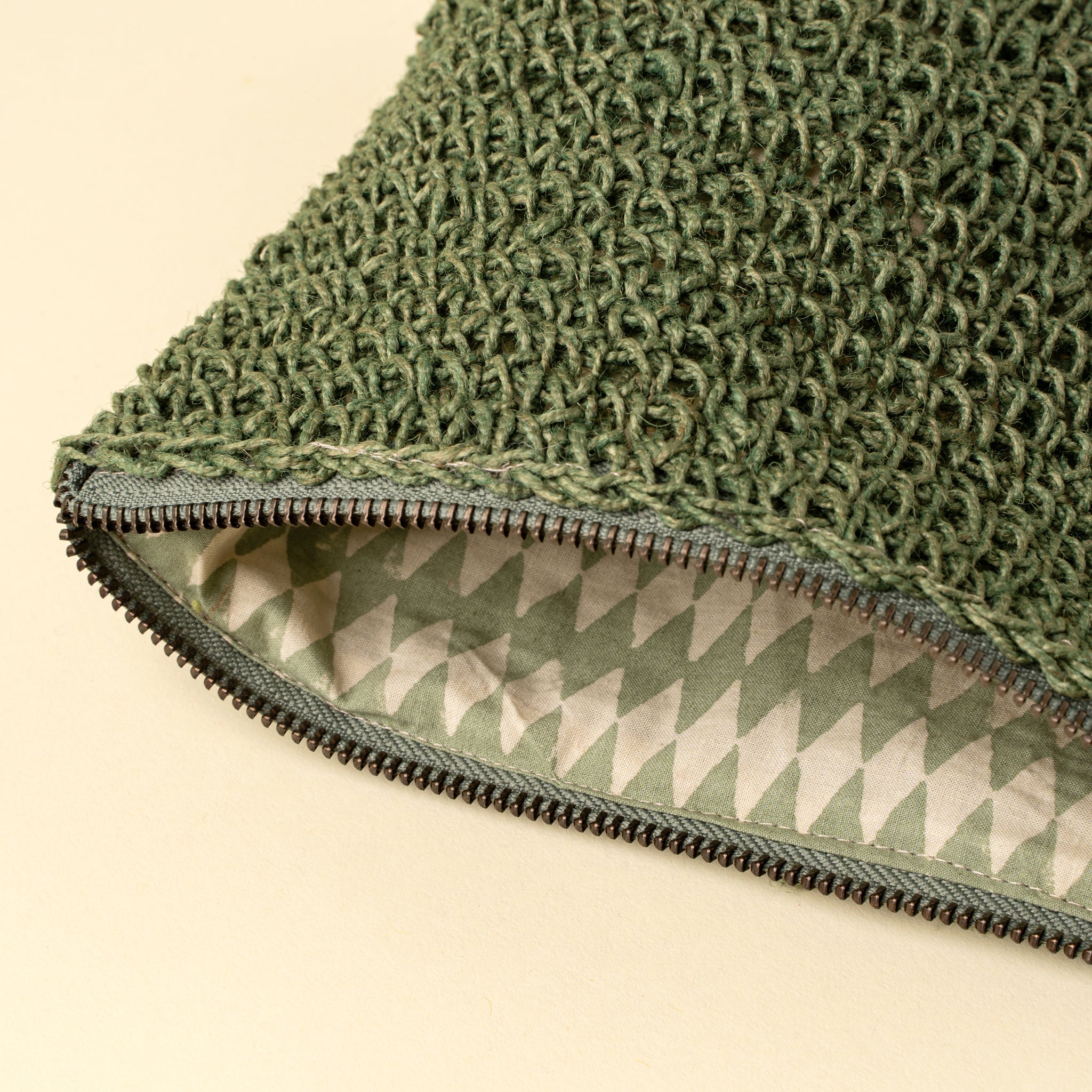 Lola Woven Jute Pouch, Green, A Handcrafted Clutch Bag with Artisanal Texture