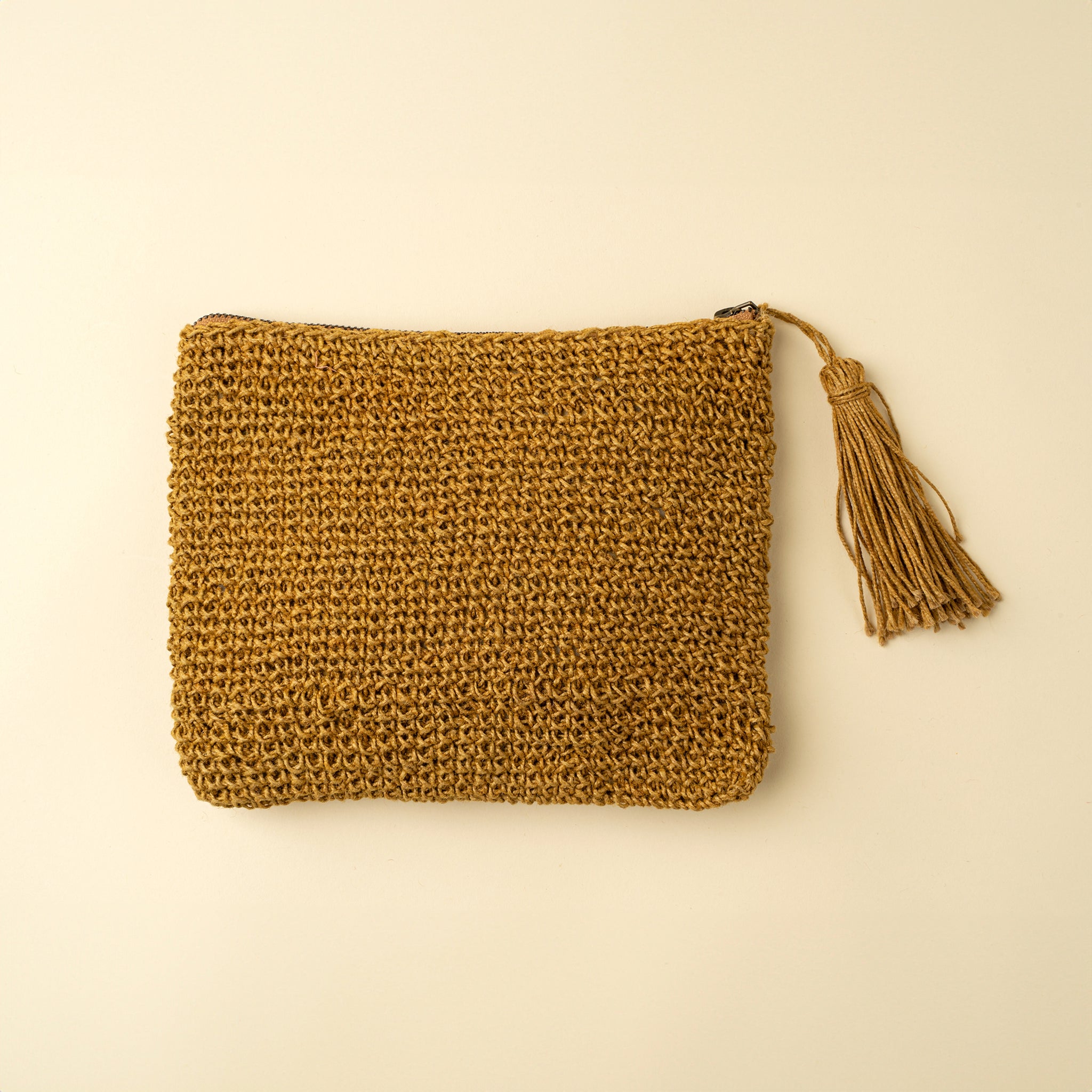 Lola Woven Jute Pouch, Ochre, A Handcrafted Clutch Bag with Artisanal Texture