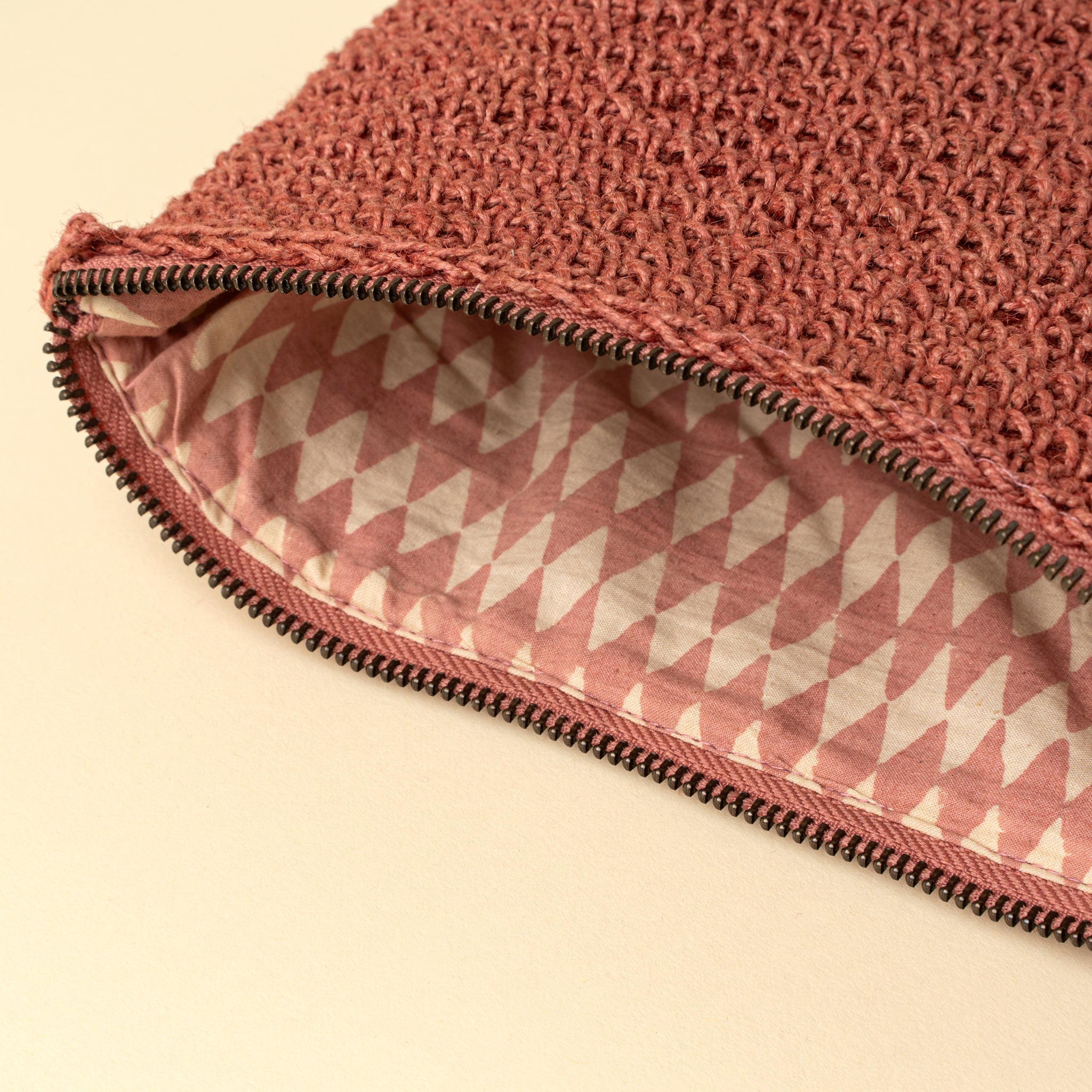 The Lola Woven Jute Pouch blends natural texture with everyday utility. Handwoven using traditional crafting methods, this lightweight clutch bag features a matching hand-knotted tassel, durable YKK zipper, and a soft cotton lining printed with a block motif. Perfect for day trips, makeup essentials, or as a casual grab-and-go accessory.