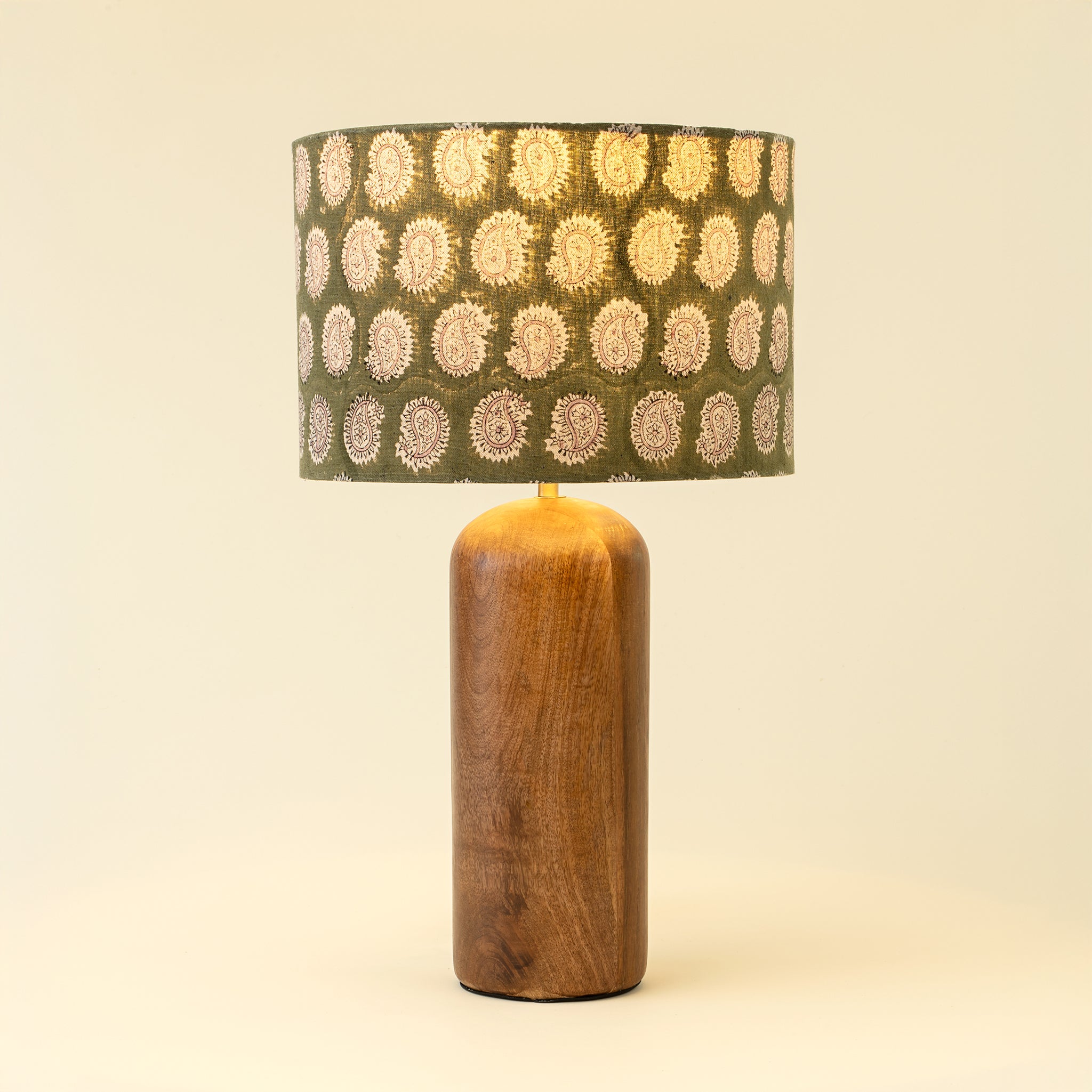 Drum lampshade made with hand block printed fabric