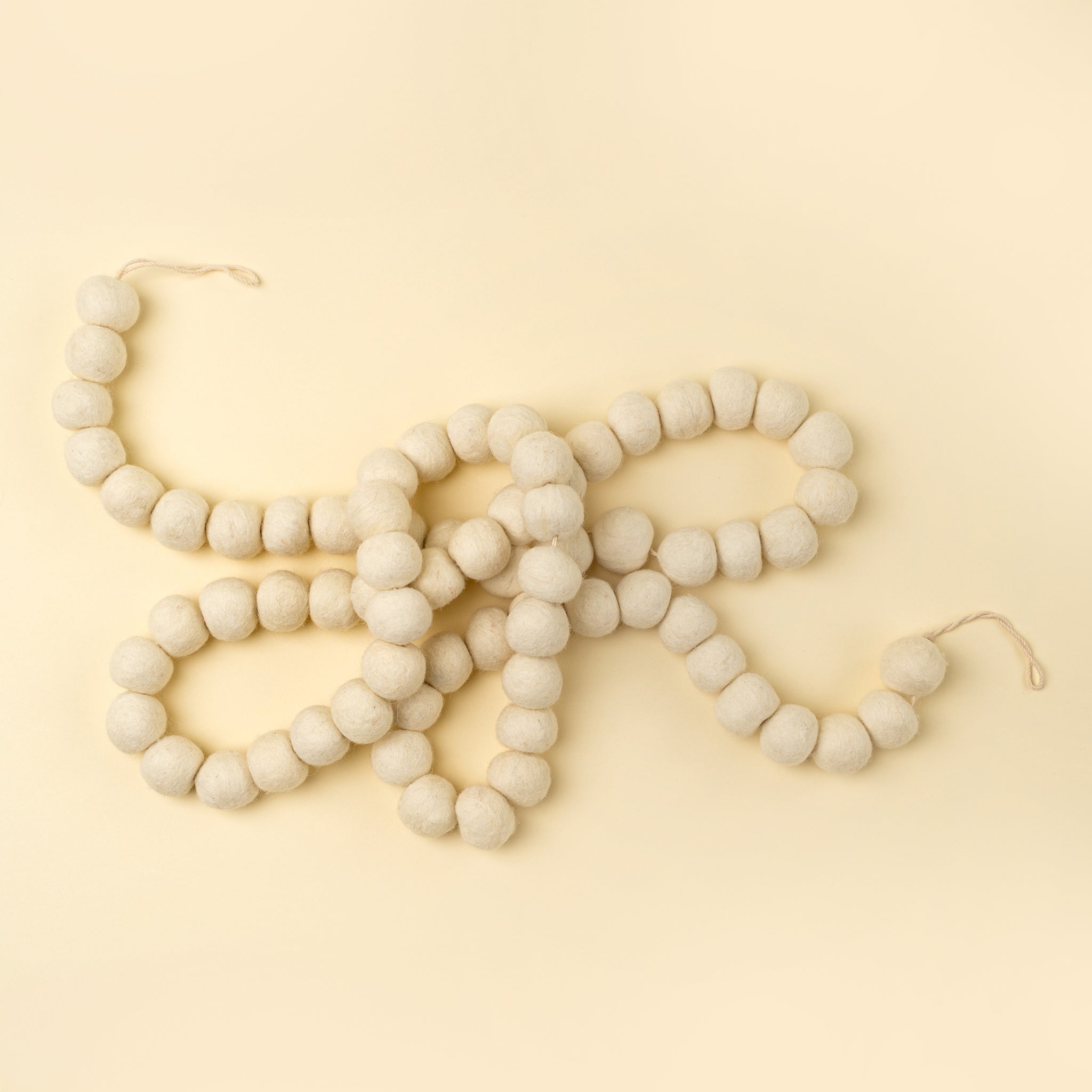 Cream Pom Pom Felt Garland, A Soft and Sustainable Accent Décor Detail