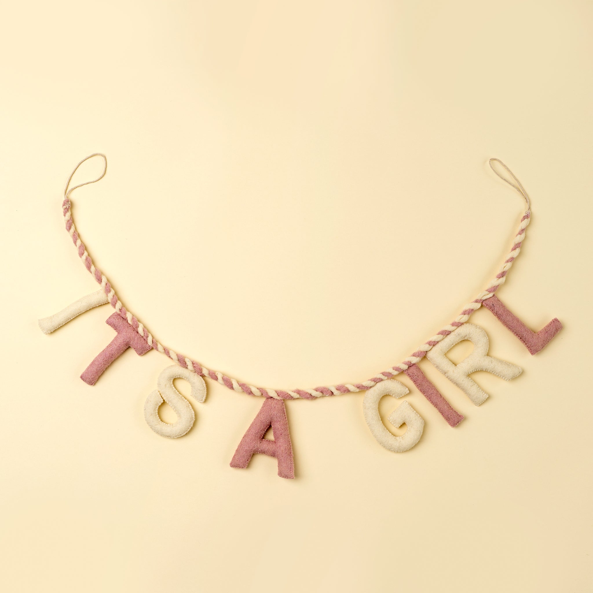 It’s a Girl Felt Garland, A Handcrafted Nursery Decor Piece Made with Sustainable Materials