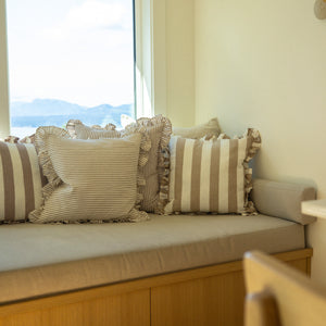 20x20 Ruffle Thin Stripe Pillow, Fawn
