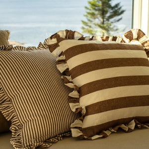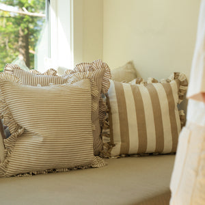20x20 Ruffle Thin Stripe Pillow, Brown
