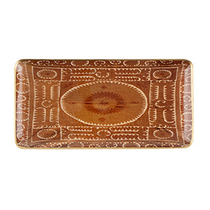 Rectangular tray with vibrant Suzani-inspired prints in rusty orange
